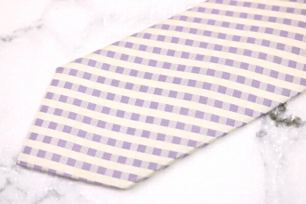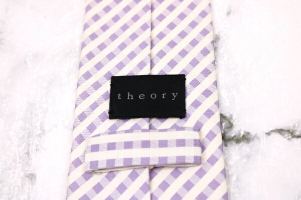 セオリー theory 格子柄 日本製 シルク チェック柄 パープル シルク ブランド ネクタイ 送料無料 【中古】