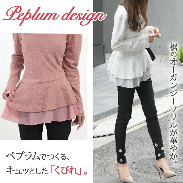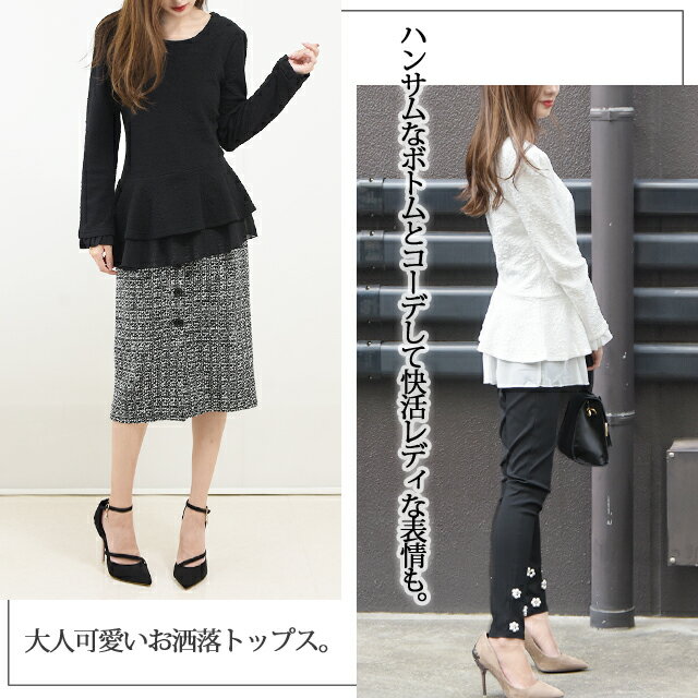 ! 春夏 秋冬 秋 春 もて モテ アシメ 黒 ブラック 白 ホワイト ピンク M L XL 2XL LL 2L 3L hhh-style HUG.U HUGU ハグユー はぐゆー w797裾がペプラムになっているので、くびれが生まれて細見せ効果が期待できるレイヤードトップス。